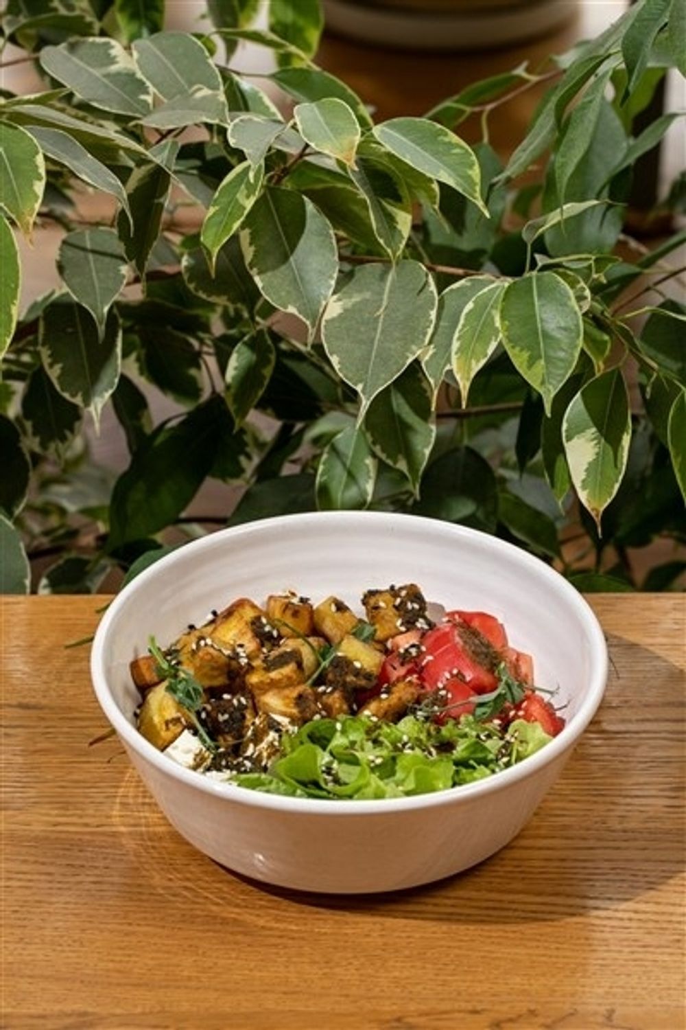 Салат из свёклы с печёными перцами, фетой и салатом романо