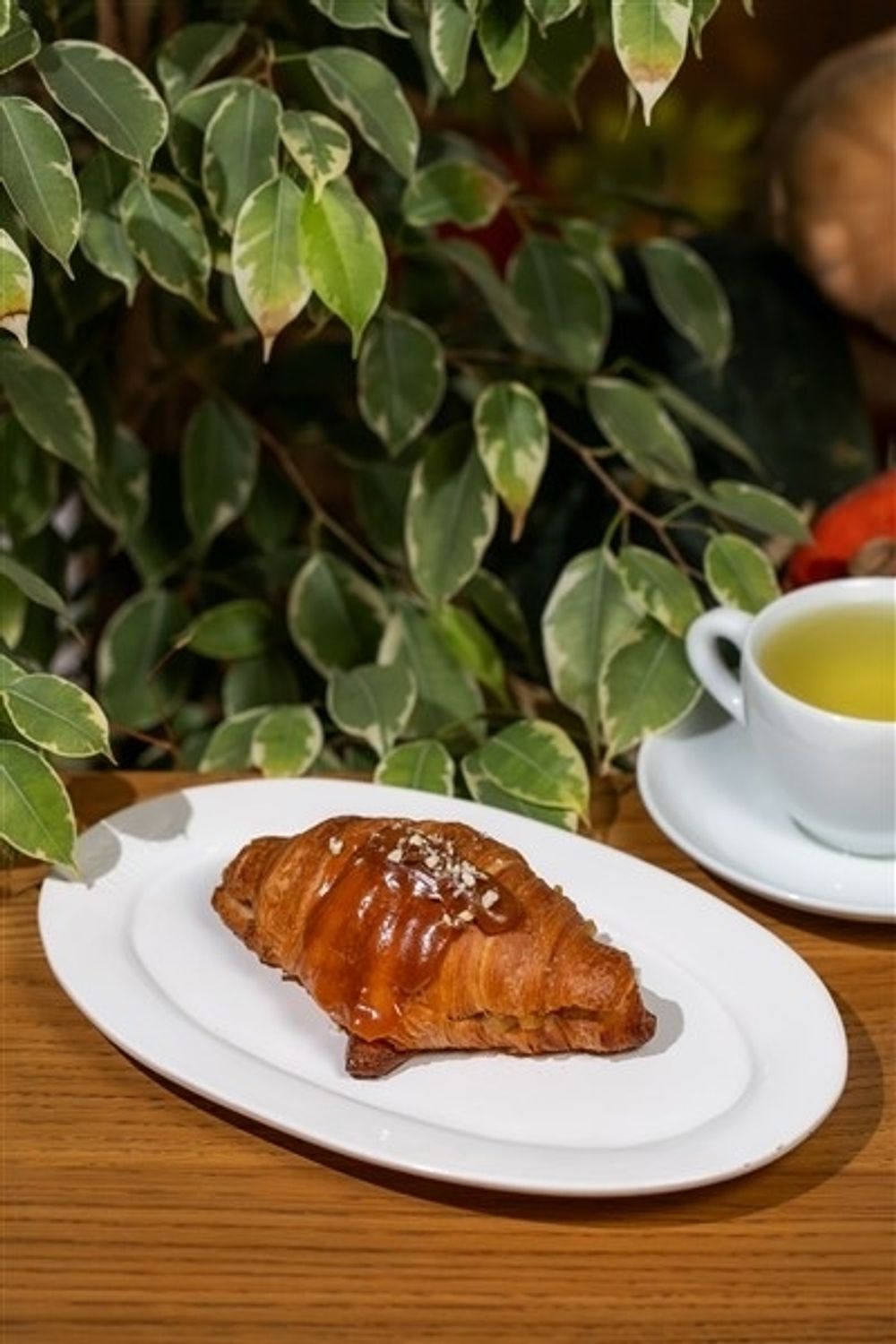 Круассан с куриной котлетой, беконом, сыром чеддер и горчичным соусом