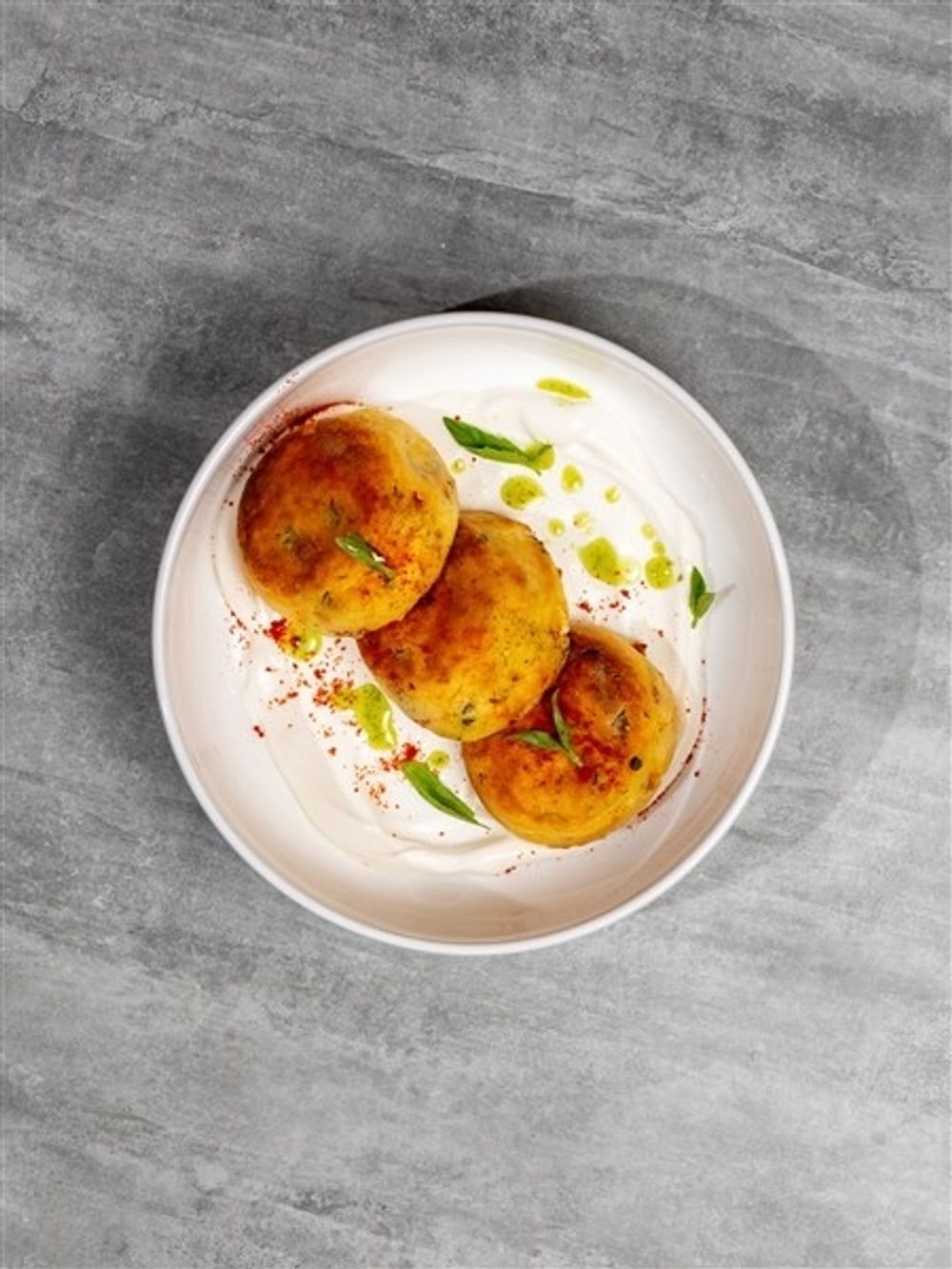 Сырники сытные с вялеными томатами, сметаной и соусом песто