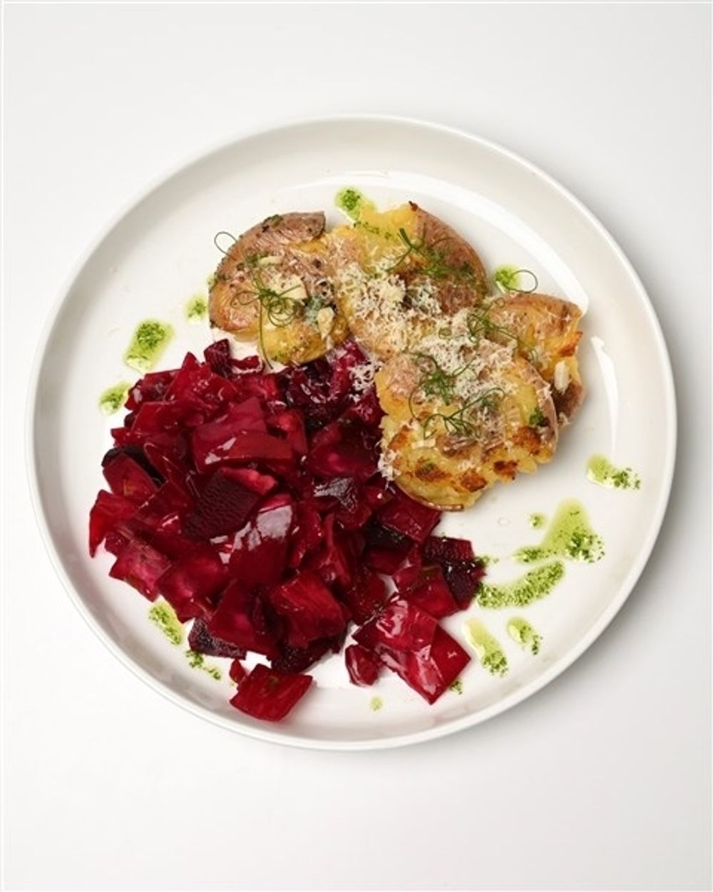 Мятый бейби-картофель с ферментированной капустой