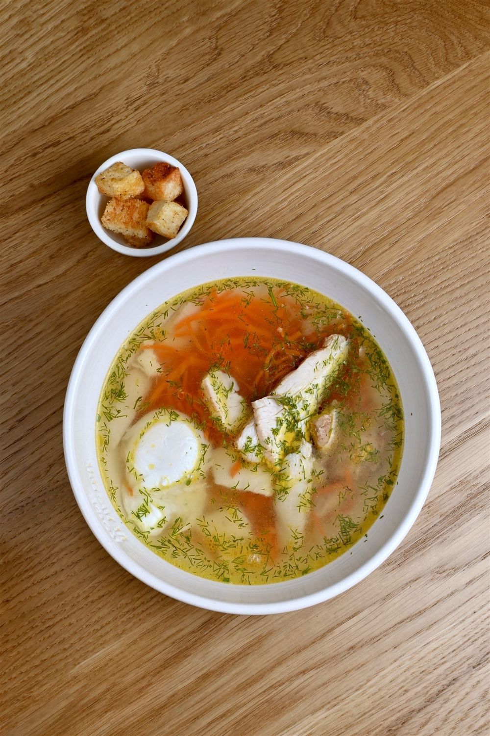 Бульончик с яичком из наваристой курочки. Согревает и радует в любую погоду.